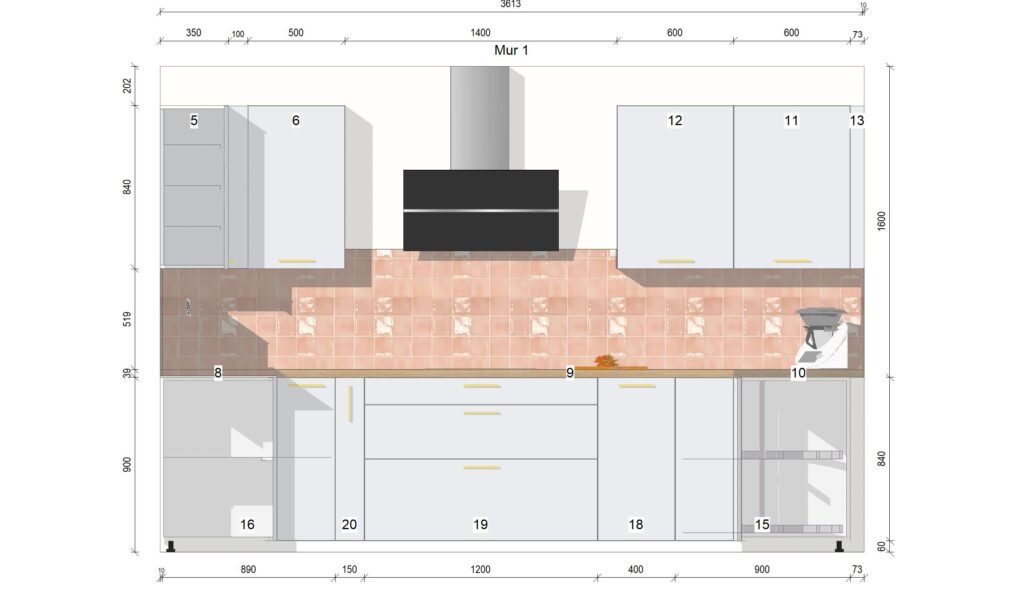 Pour éviter les problèmes avec les arrivés d'eau, les prises électriques, etc, il faut les inclure dans vos prises de mesure. Un plan technique réaliser par la suite garantira le bon déroulement de la pose.